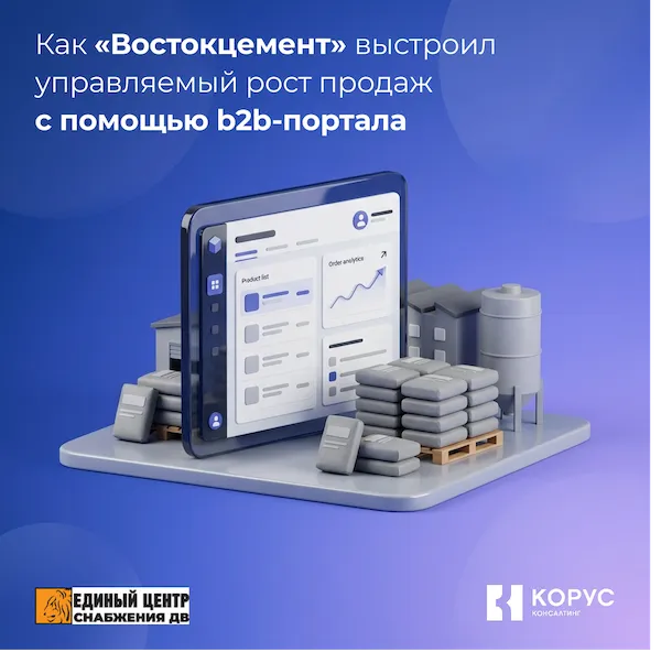 ГК «Востокцемент» — российская промышленная группа, производитель строительных материалов с собственной сырьевой базой. Компания последовательно инвестирует в цифровизацию ключевых процессов, в том числе в повышение качества обслуживания b2b-клиентов. Совместная работа позволила впоследствии подойти к улучшению b2b-портала не изолированно, а системно, как к развитию одной из частей всей ИТ-архитектуры компании.