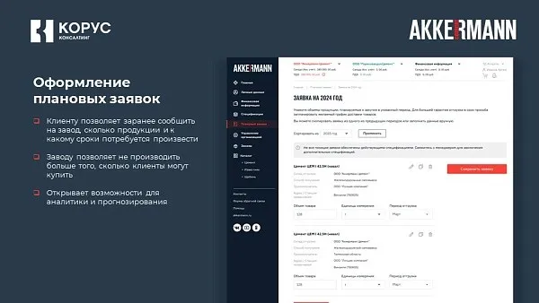 Чтобы понять, как реализовать необходимую функциональность, команда «КОРУС Консалтинг» изучила CJM оптового покупателя цемента. Путь клиента длинный и сложный: от подписания договора до получения заказа может пройти несколько недель. На CJM влияют такие факторы как налоговое и региональное законодательство, финансовое состояние клиента, загруженность отдельного сотрудника и сезонность. Чтобы упростить путь клиента, не всегда хватает базовых инструментов личных кабинетов вроде закрытой авторизации пользователей или интеграции портала с системой 1С, поскольку они не позволяют персонализировать покупку с учетом всех факторов.