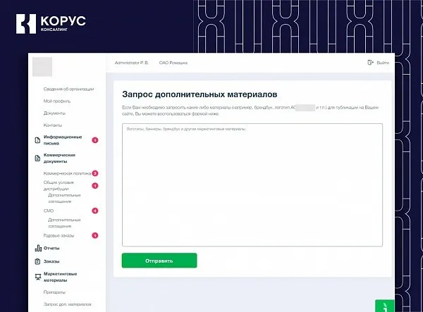 Разработали для производителя B2B-портал с личным кабинетом для контрагентов. Новая онлайн-платформа охватывает полный цикл взаимодействия с дистрибуторами — а это порядка 200 пользователей, — от планирования потребности до исполнения закупок.