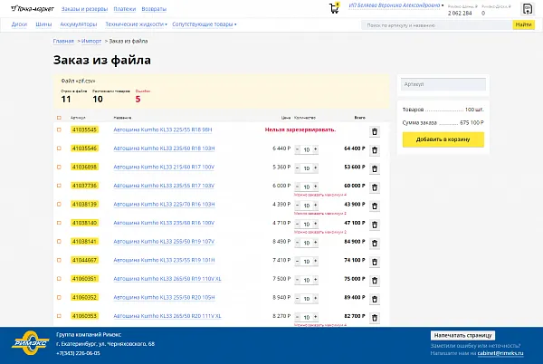Благодаря интеграции с учетной системой «Римэкс» SAP ERP информация о продуктах регулярно актуализируется. Настроен обмен данными по ценам и индивидуальным прайсам, остаткам и резервам, что позволяет отображать в личном кабинете B2B-клиента актуальную информацию обо всех товарах на складе или в сервис-маркетах.