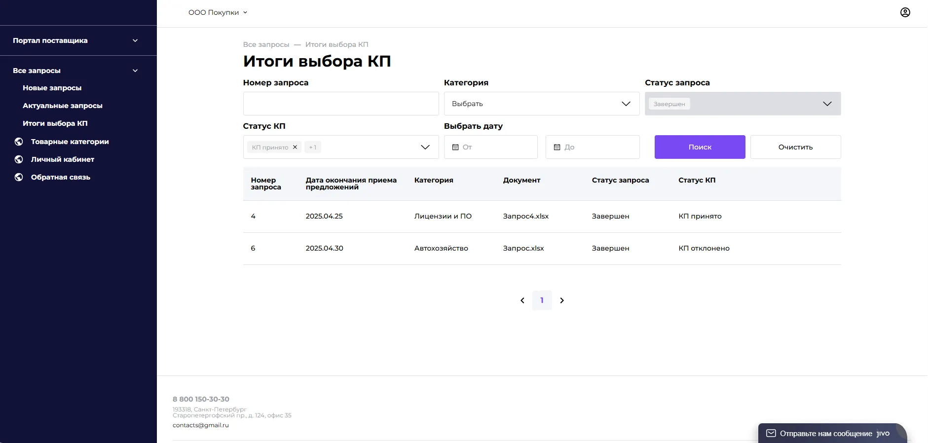 Все этапы работы с поставщиками фиксируются в системе, что упрощает контроль и аудит.