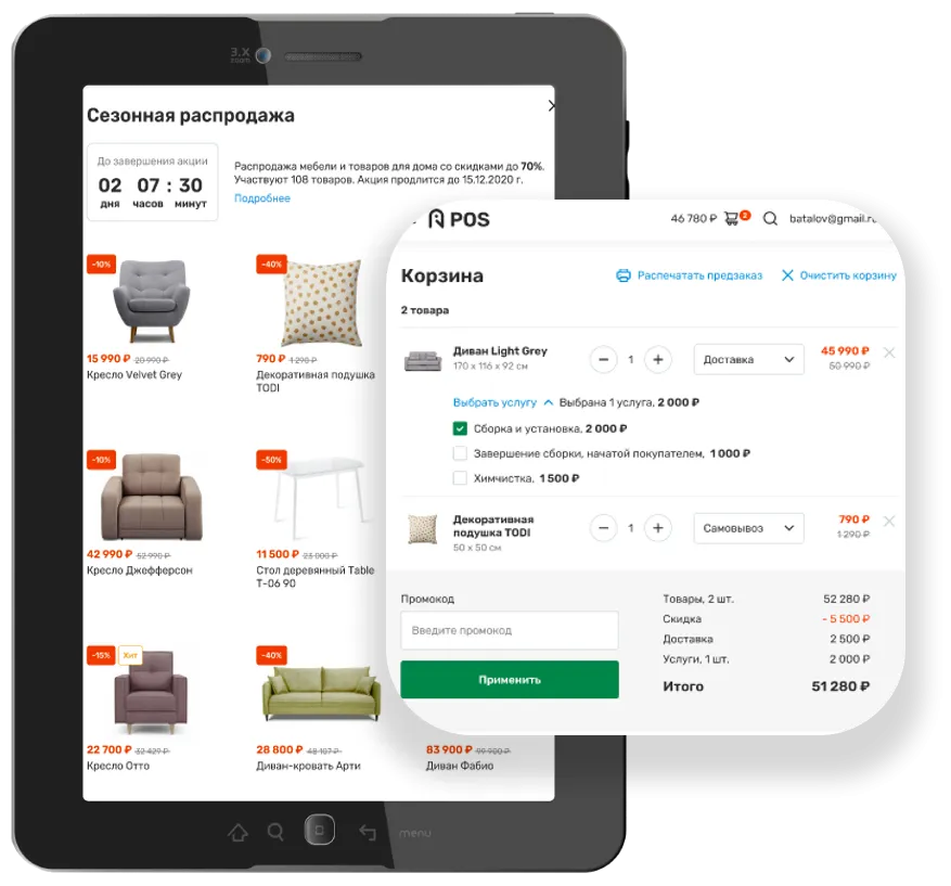 Оформите заказ прямо с планшета или мобильного телефона, чтобы покупатели не стояли в очереди на кассу.